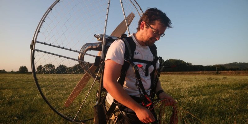 Few years ago I've got a trike flight as a gift for my birthday, after the flight, the pilot showed me the planes in the hangar and stopped by a paramotor hanging on wall. He remembered the good old times he was flying it before switching to the trike and mentioned he is not flying it any longer so...